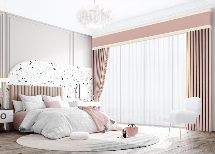 臥室的窗簾在功能上要求有質(zhì)厚、夠溫馨、隱秘性好,花型建議與床上用品相一致,款式上多見外簾窗紗,里簾一般采用遮光窗簾,色彩不用太花哨,可以讓我們擁有更加健康的睡眠質(zhì)量。